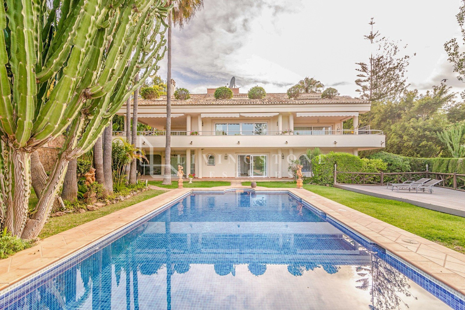 Esta impresionante villa se encuentra en la prestigiosa zona de Río Real, en Marbella Este, Málaga, ofreciendo un entorno tranquilo con acceso inmediato al reconocido Golf Río Real. La propiedad destaca por sus generosas proporciones, con una superficie construida total de 977 m², que incluye 448 m² de espacio interior y una extensa terraza de 384 m². Diseñada para proporcionar confort y privacidad, la villa cuenta con seis amplios dormitorios y cinco baños, lo que la hace ideal para familias o para quienes disfrutan de recibir invitados.