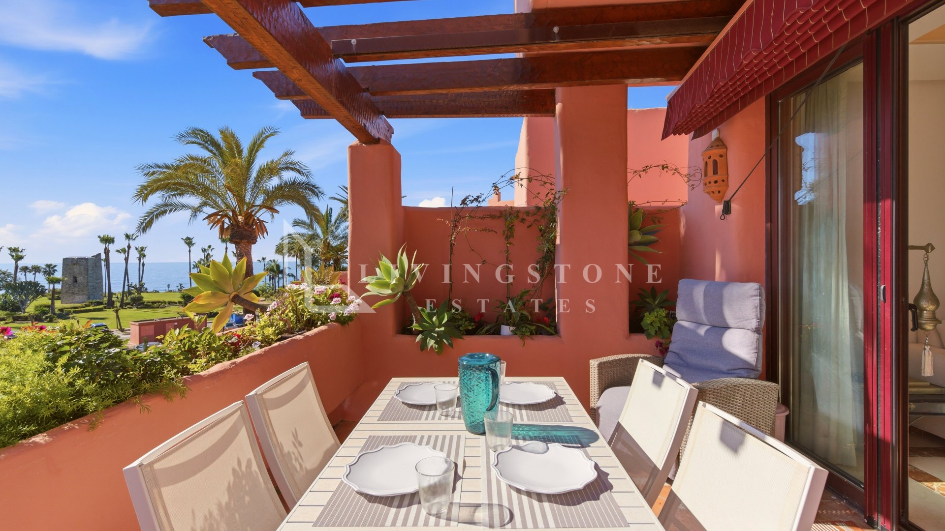 Appartement Terrasse à louer à Cabo Bermejo, Estepona Est avec 3 chambres, 3 salles de bains, construit à 2002 et a piscine (communautaire), garage et jardin (communautaire). Dimensions: 172m² construit et 114m² terrasse.